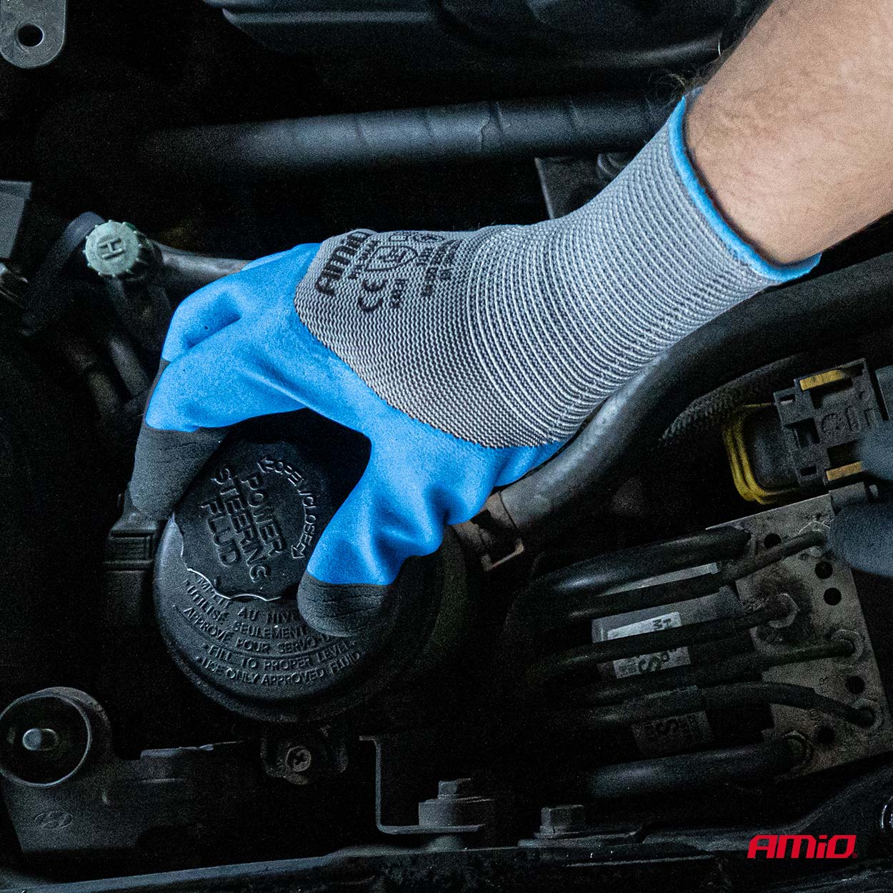 Amio Amio – Γάντια Εργασίας με επικάλυψη αφρού λάτεξ χρώμα γκρι/γαλάζιο/μαύρο μέγεθος No.9 – 2 ζευγ. (04644/AM)