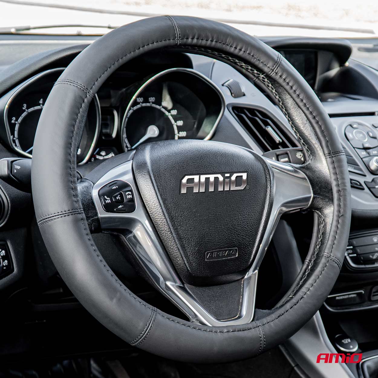 Amio Amio – ΚΑΛΥΜΜΑ ΤΙΜΟΝΙΟΥ ΑΠΟ ΤΕΧΝΟΔΕΡΜΑ 41-43CM SWC-48-XL ΣΕ ΜΑΥΡΟ ΧΡΩΜΑ ΜΕ ΜΑΥΡΕΣ ΡΑΦΕΣ – 1 ΤΕΜ. (03548/AM)