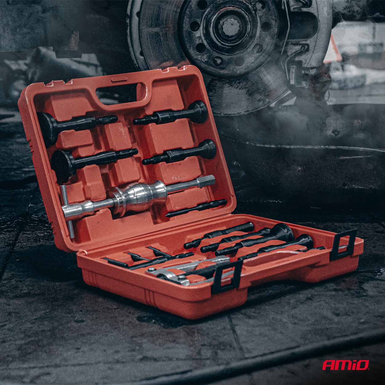 Amio Amio – Σφυρί Κρούσης με Εξολκέα Ρουλεμάν 8-58mm Heavy Duty Dual Mode σε Βαλιτσάκι για Αφαίρεση με Υψηλή Δύναμη & Ασφαλή Χρήση – Σετ 16 Τεμ. (04758/AM)
