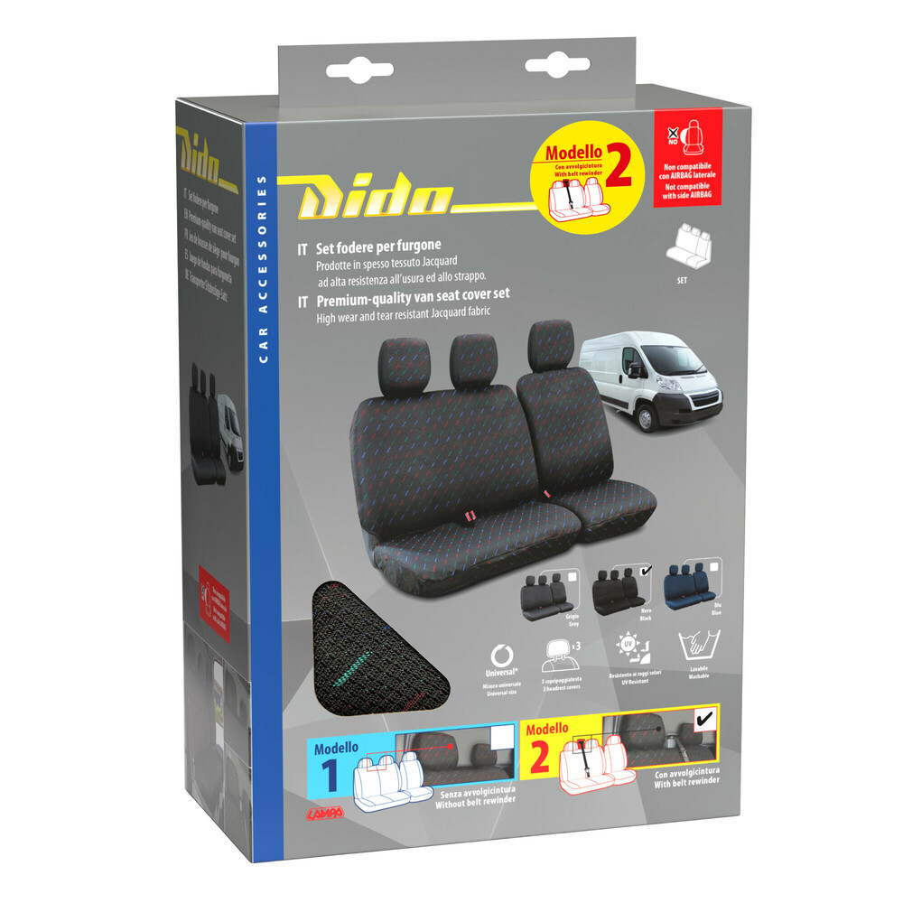 Lampa Καλύμματα Καθισμάτων Dido-2, με επανατυλικτήρα ζώνης – Μαύρο