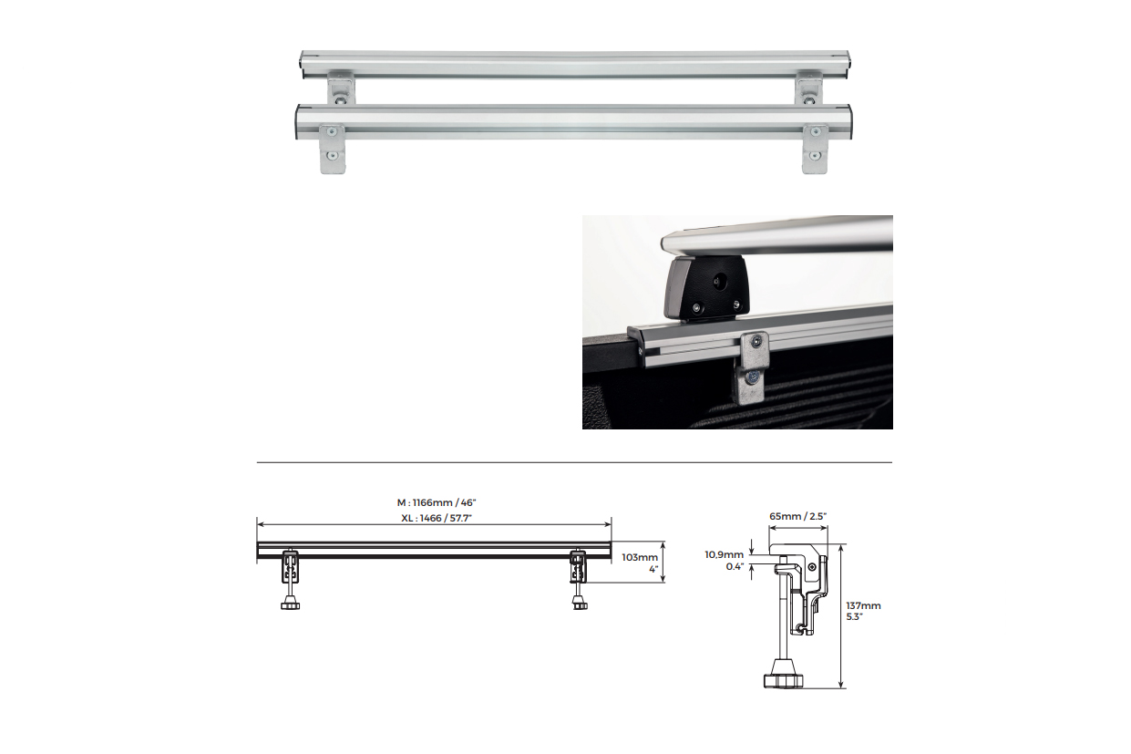 Menabo ΒΑΣΕΙΣ ΣΤΗΡΙΞΗΣ ΑΛΟΥΜΙΝΙΟΥ TBR FIXING PROFILE KIT M 116,6 cm ΣΕ ΑΣΗΜΙ ΧΡΩΜΑ ΜΕ ΥΠΟΔΟΧΕΣ T-SYSTEM ΓΙΑ ΜΠΑΡΕΣ TBR ΚΑΡΟΤΣΑΣ ΣΕ PICKUP ΚΑΙ ΑΓΡΟΤΙΚΑ ΟΧΗΜΑΤΑ MENABO – 2 ΤΕΜ.