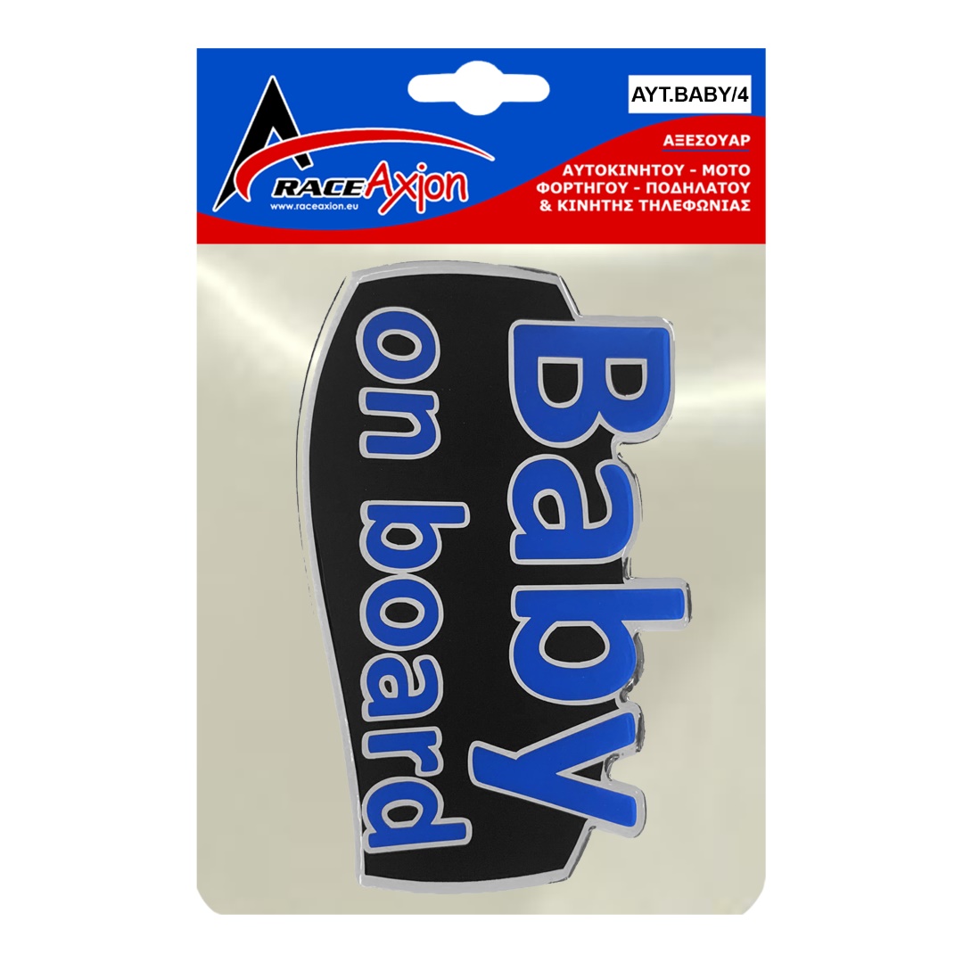 Race Axion BABY ON BOARD ΑΥΤΟΚΟΛΛΗΤΟ ΕΞΩΤΕΡΙΚΗΣ ΧΡΗΣΗΣ 18,7 Χ 11,9 cm ΜΠΛΕ/ΜΑΥΡΟ/ΧΡΩΜΙΟ ΜΕ ΕΠΙΚΑΛΥΨΗ ΕΠΟΞΕΙΔΙΚΗΣ ΡΥΤΙΝΗΣ (ΥΓΡΟ ΓΥΑΛΙ) – 1 ΤΕΜ.